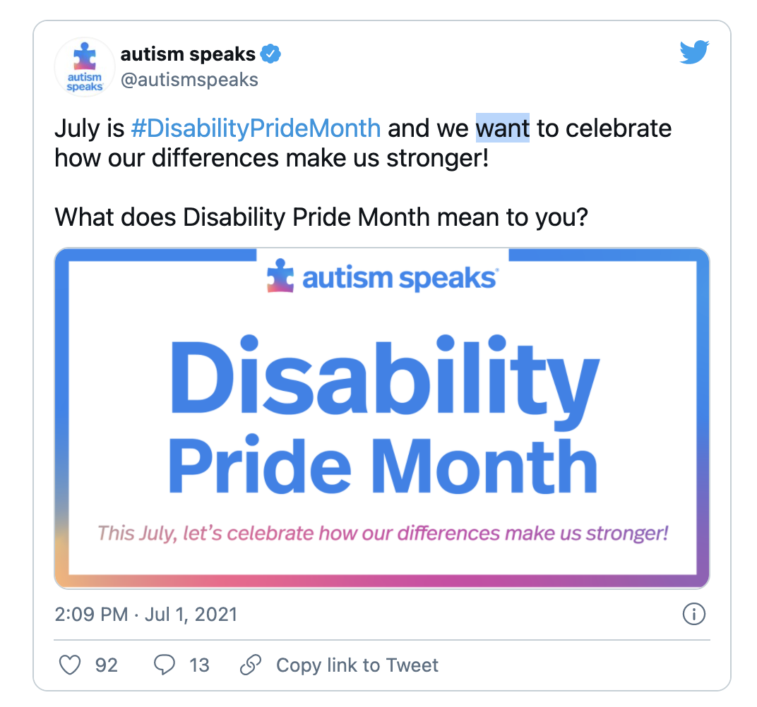 This Disability Pride Month she hopes to celebrate the small wins and joys in life, such as learning to curl her hair with the assistance of her foot. She hopes to bring pride to the term "disabled" and awareness to ableism, the discrimination of people with disabilities.